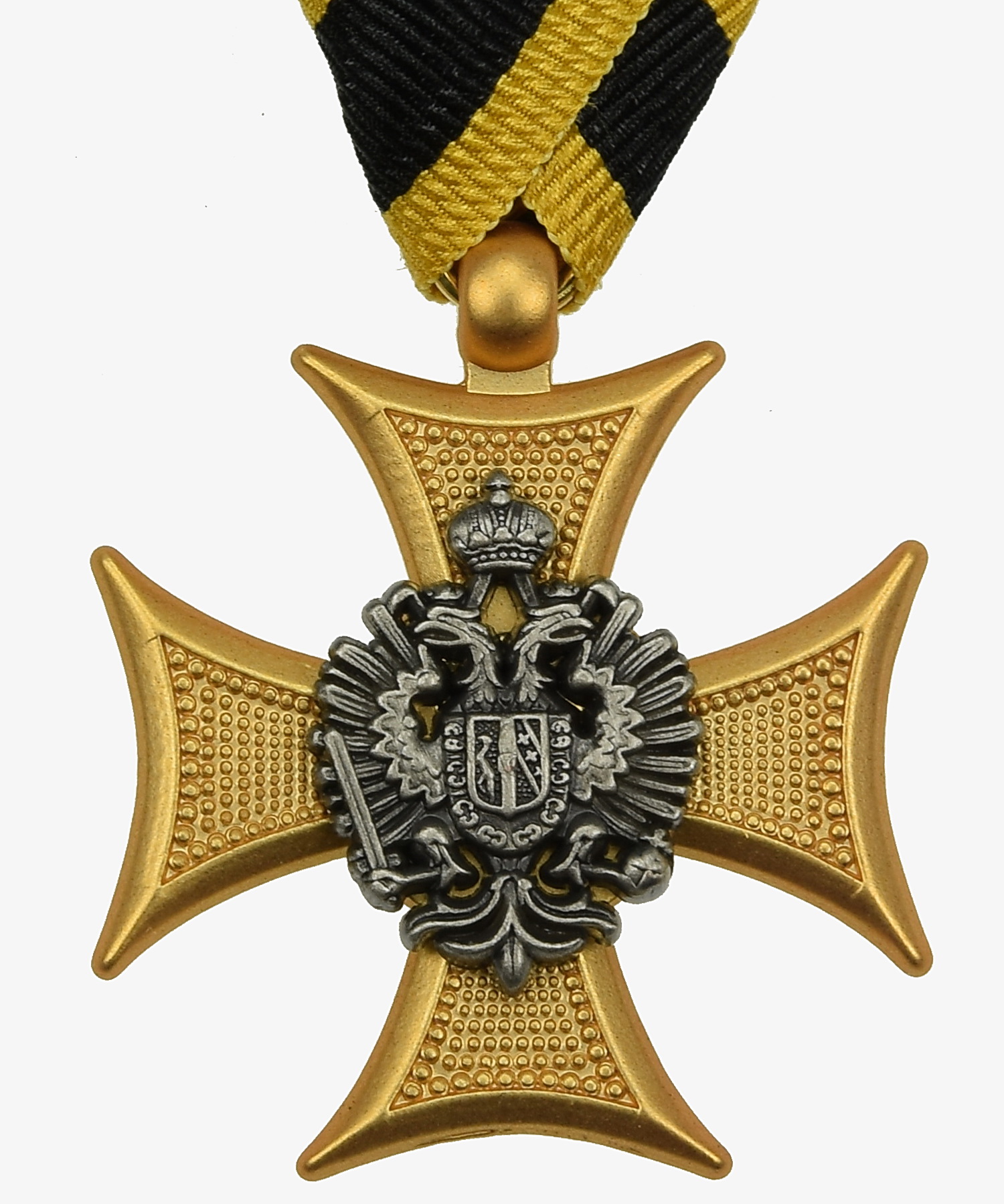 Das Österreichische Militärdienstzeichen für Offiziere 3. Klasse war eine Dienstauszeichnung der k.u.k. Armee und wurde für fünfzehn Jahre tadellosen Dienst im Offiziersstand verliehen. Es handelt sich um ein schlichtes, aber traditionsreiches Kreuz am gelb-schwarzen Band, das die langjährige Loyalität und Pflichterfüllung eines Offiziers würdigte. Die 3. Klasse stellte die Einstiegsstufe der Offiziersdienstzeichen dar und ist heute ein typisches, gern gesammeltes Stück aus der späten Habsburger Militärtradition.