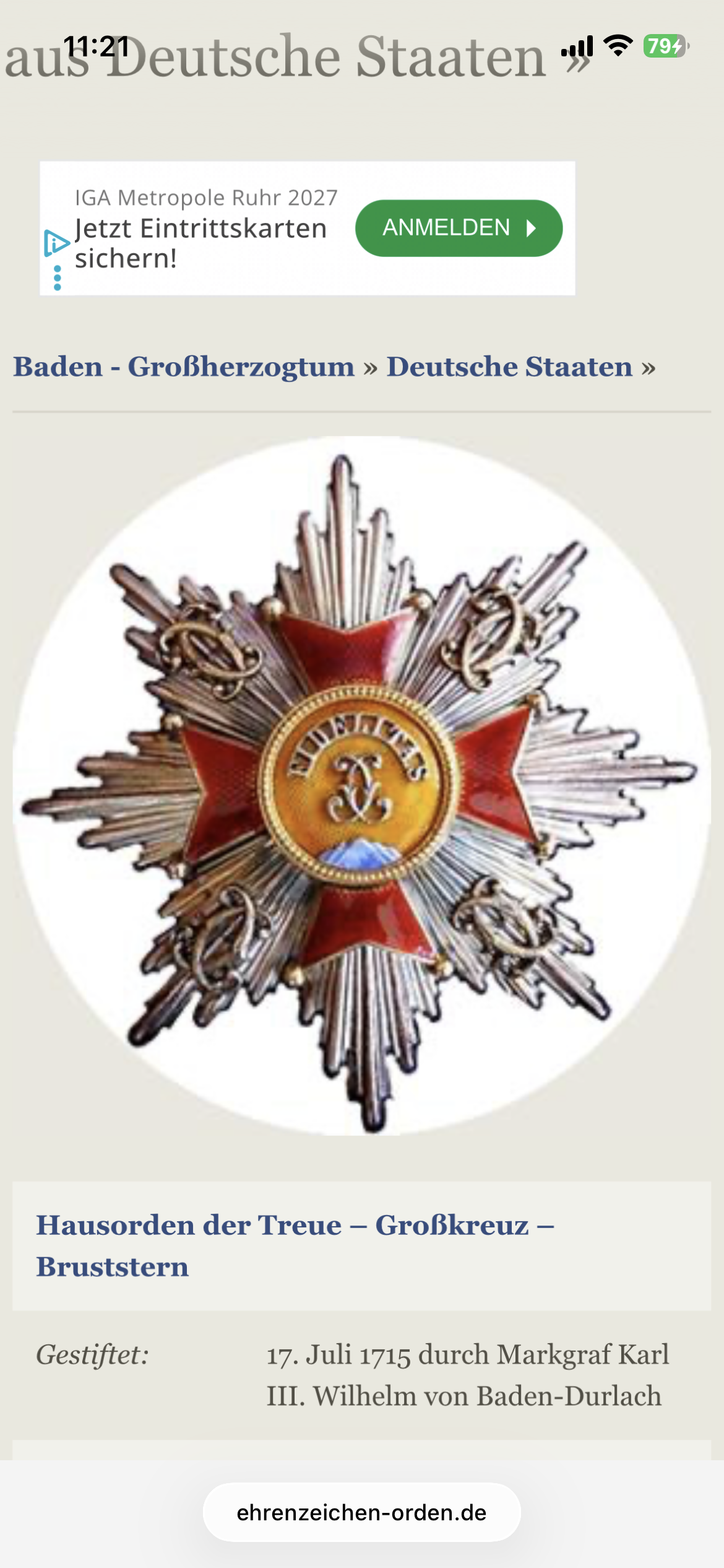 | 01.02.2026 | U.G. | Baden - Militär-Karl-Friedrich-Verdienstorden, Ritterkreuz. |